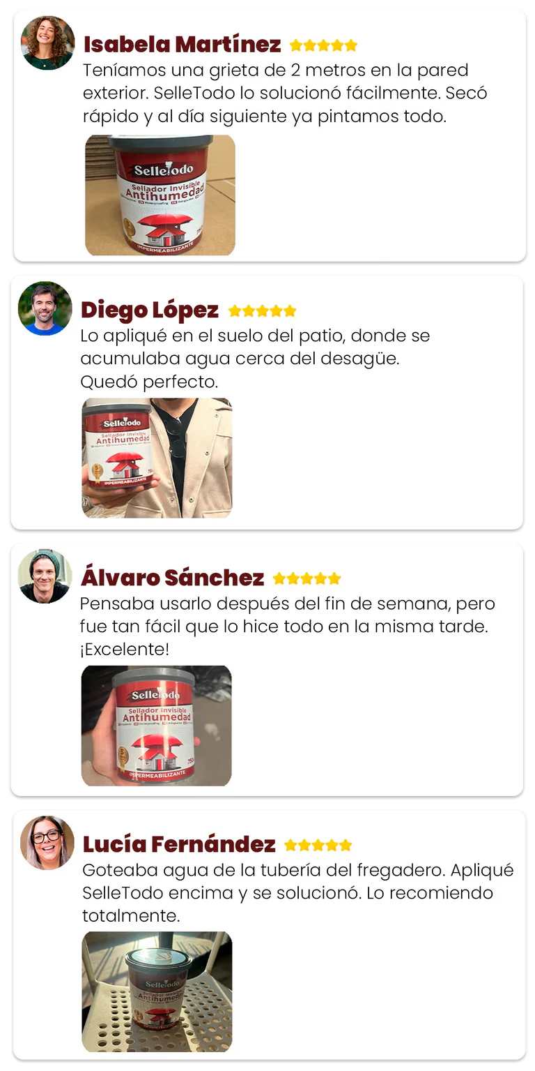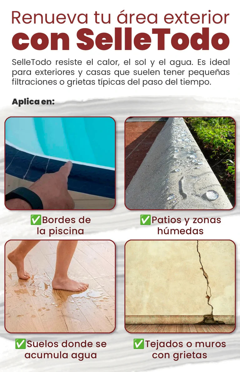 Trabajamos con productos probados, confiables y con alto nivel de satisfacción entre nuestros clientes. SelleTodo ya es uno de los selladores más vendidos del país, con miles de aplicaciones exitosas en casas, apartamentos, patios y viviendas de verano.